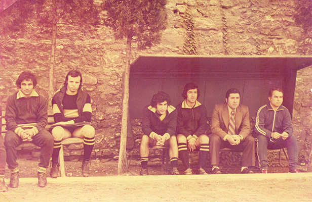Beykoz’un ikinci ligde mücadele ettiği yetmişli yıllarda, Şirzat Dağcı umumi kaptan, takım arkadaşı Aydın Sümer (sağ başta) teknik direktör olarak bir maçı yedek futbolcularla birlikte izliyorlar.