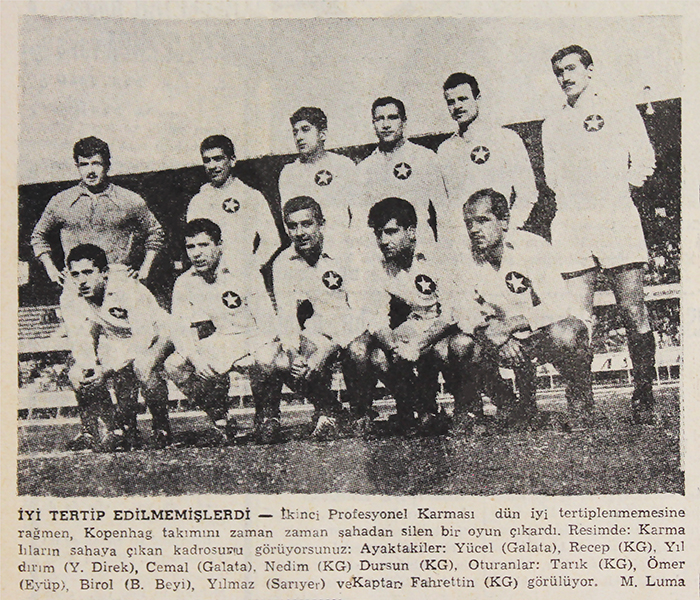 Soldan sağa ayaktakiler: Mahmut Evren (Feriköy), Yılmaz Yücetürk (PTT), Bilge Tarhan (İstanbulspor), Nevzat Güzelırmak (Göztepe), Çağlayan Derebaşı (Göztepe), Ayhan Elmastaşoğlu (Galatasaray). Oturanlar: Yılmaz Gökdel (Galatasaray), Talat Özkarslı (Galatasaray), Rıdvan Kaner (Feriköy), Erkan Yanardağ (Beşiktaş), Yılmaz Urul (İstanbulspor).