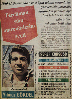 Yılmaz Gökdel antrenörlük kariyerinin en parlak dönemini 1980-81 sezonunda, Gaziantepspor’dan ayrılıp Ankaragücü’ne geçtiği zaman yaşamış. Bu sezonda Türkiye İkinci Ligi’nde mücadele eden sarı-lacivertli takım, bilindiği gibi Türkiye Kupası’nı kazanarak futbol tarihimizde bir ilki gerçekleştirmişti. Devlet Başkanlığı Kupası maçında, lig şampiyonu Trabzonspor’u da yenmeyi başaran Ankaragücü, dönemin askerî yönetiminin aldığı bir kararla Türkiye Birinci Ligi’ne çıkarılmıştı. Kupanın hikâyesine geçmeden önce Yılmaz Hoca’ya askerî cuntanın kupaya müdahalesiyle ilgili iddiaları sorduğumuzda bunu kesin bir dille reddediyor. Türkiye Kupası’nı kendi emekleri ve alın teriyle kazandıklarını şu sözlerle ifade ediyor: “Kenan Evren hayatında bir gün Ankaragücü kulübüne gelmemiştir. Vali Vecdi Gönül meraklıydı, her hafta gelirdi. ‘Ben cumhurbaşkanıyla konuştum, kupada şampiyon olun sizi birinci lige çıkaracak,’ dedi. Şampiyon olduktan sonra Kenan Evren, ‘Trabzon’u da yensinler, öyle,’ demiş. Adamın bizimle alakası yok.” Kupa maçlarının günümüzde olduğu gibi o yıllarda da pek önemsenmediğini şu sözlerle dile getiriyor: “Bir zamanlar, birçok idareci ve antrenör Türkiye Kupası maçlarını önemsemezdi, ne olacak kupadan diye düşünürlerdi. Ben de tam tersini söylüyordum. Antrenörler, futbolcular her kulvarda yarışmak için var. Adam Avrupa’da senede 60-70 maç oynuyor. Biz 30 maç oynayınca futbolcuları alıp sarmalayın diyorlar. Türkiye Kupası’nda da gideceğimiz yere kadar gideriz derdim.”