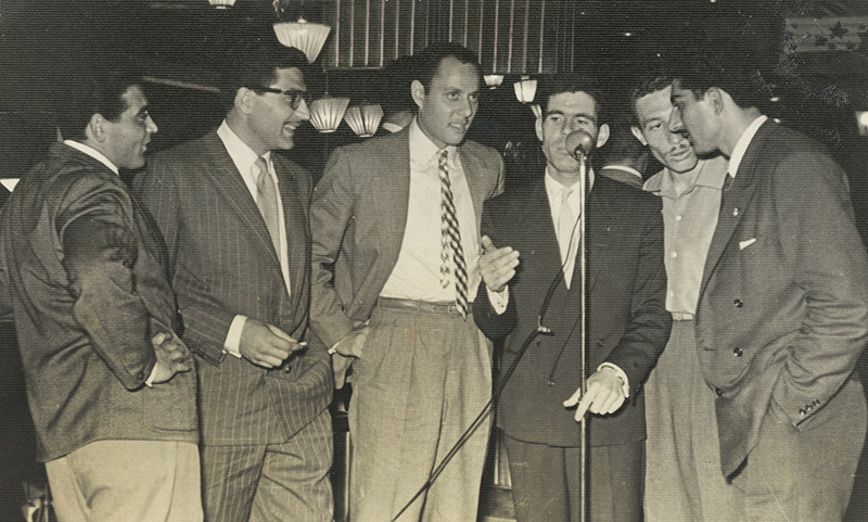 Darüşşafakalı voleybolcular bir yemekte bir arada. Soldan sağa: Melih Matçora, Cafer Aksakal, Ender Kurt, Nasuhi Ünlü, Atila Sesören, Ayhan Altuğ.
