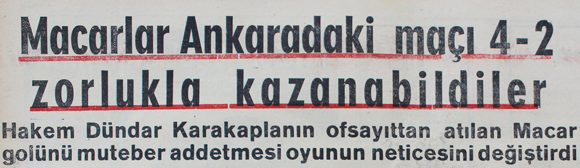Macar takımında 31. dakikada Kotasz’ın yerine Çordaş oyuna girdi. Fakat bu değişiklik milli takımımızın temposunu bozmadı ve ikinci gol 41. dakikada geldi. “Lefter, İsfendiyar’la müştereken hücuma geçti. Aldığı topla beraber sağ iç yerinde santrhafı ve sol beki atlattı. 18 pası içinde kaleye giderken Szojka tarafından arkadan tırpanlandı. Bu hareketi hakem penaltıyla tecziye etti (cezalandırdı). Penaltıyı Lefter sağ şütle sol köşeden atarak milli takımımızın ikinci golünü yapmaya muvaffak oldu.”