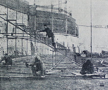 Nihayet aylardan beri beklenen maçın oynanacağı gün geldi. İzmir ve Ankara’da olduğu gibi İstanbul’da da atletizm pistine seyyar tribün kurulmuştu. Deniz tarafındaki büyük merasim kapısından başlayarak bütün numaralı tribün boyunca uzanan bu portatif tribün, Gazhane tarafındaki kale arkasında son buluyordu.