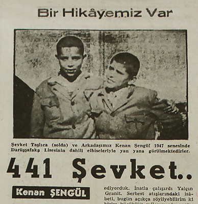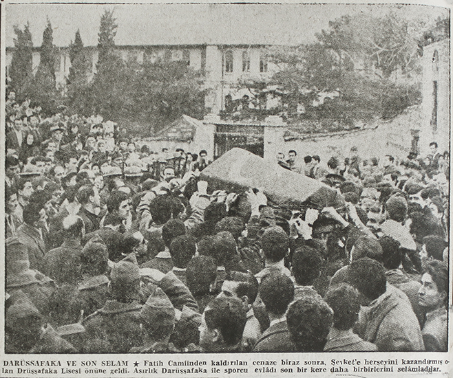 Darüşşafakalı olmak yetim büyümek demektir. Bu sebepten bizler birbirimize fazla inanmış, birbirimize daha fazla yaklaşmış insanlarız. Bu yuvanın bu hüviyeti bizleri birbirimize kardeş gibi bağlamıştır. Bugün 441 Şevket’i kaybettik… Şevket sadece bir Darüşşafakalı değil, memleket çapında iftihar ettiğimiz bir kıymetti. … En son gazeteye geldiğinde, “Turgut,” demişti, “Hayatta üç dileğim oldu. İyi bir yuvaya sahip olmak, askerliğimi İstanbul’da yapmak ve bu sene takımımızın şampiyon olması.” Şevket neşeli haliyle yuvasında mesuttu. Askerliğini İstanbul’da yapıyor ve Darüşşafaka da İstanbul şampiyonasında liderdi. Aramızdan ayrıldığı şu an “O” mesuttu. Çünkü üç arzusu da tahakkuk yolundaydı.