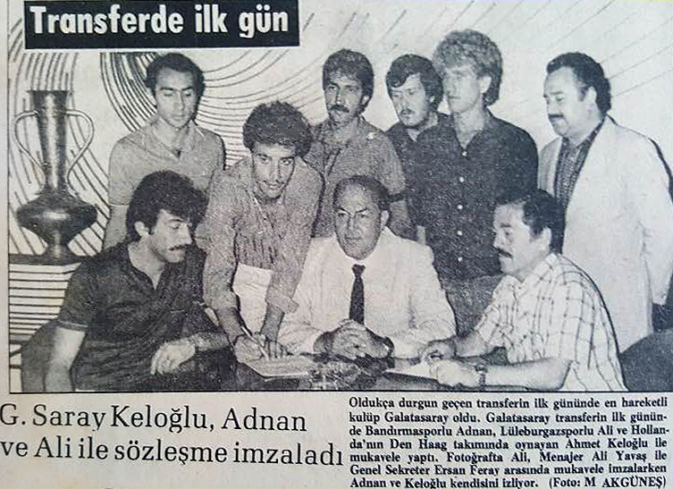 Devre arasında oynanan bu milli maç, sezon sonunda İstanbul’a dönmesini sağlamış. O maçta beğenilince Galatasaray kulübünün transfer listesine girmiş. “Hepimizin yaş ortalaması 20-21 olduğu için antrenörler bu tip maçlara çok ilgi gösterirler. Özkan Sümer o zaman Galatasaray’ı çalıştırıyordu. Ben o maçta libero oynamıştım ve çok iyi bir maç çıkarmıştım. Hatta ertesi gün bazı gazetelerde maçı kaybettik ama Adnan ve Can’ı kazandık gibi yazılar çıkmış. Tabii benim oynadığım Bandırmaspor ikinci ligde, şampiyonluğa oynayan bir takım değil. O tip takımlardan gelen bir futbolcunun başarılı olması daha çok dikkat çekiyor. Neticede o sezon sonunda ben Galatasaray’la anlaştım. O zaman transfer yönetmeliğine göre bir futbolcu sözleşmesi bittiği zaman belli bir güne kadar satışını istemesi lazımdı. Kulüp onu satışa koyuyordu. Gidemezse kulüp o paranın yüzde 20’si gibi bir miktarı yatırıyordu. Ben satışımı istememiştim, aslında benim için sıkıntılı olabilecek bir durumdu. Çünkü o zaman bütün inisiyatifi kulübe bırakıyorsun. Neticede kulüp beni istediği paraya sattı. Başlangıçta istenen para yüksekti, Galatasaray biraz tedirgin oldu. Sonra büyükler araya girdi. İdarecilerle konuştular, çocuğun önünü tıkamayın, ortayı bulun anlamında. 82 senesinde 5 milyon lira bonservis parası aldı Bandırmaspor. Kulüp tarihinin en büyük parası diyebilirim.”