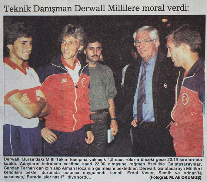 İviç’in sezon sonunda ayrılmasıyla birlikte, Almanya Milli Takımını yeni bırakmış olan Derwall’in Galatasaray’ın başına getirilmesi, futbol tarihimizin önemli dönüm noktalarından biriydi. Lakin büyük isme sahip bu hocanın gelmesiyle, uzun süredir beklenen şampiyonluğun kazanılacağını düşünenler hayal kırıklığına uğramıştı. Galatasaray 1984-85 sezonunu beşinci, 1985-86 sezonunu ikinci sırada bitirdi. “Derwall’in geldiği ilk sezon Türkiye Kupasını aldık ama ligde kötüydük. Çok transfer yapılmıştı. Derwall’in ikinci senesinde, yani 1985-86 sezonunda namağlup ikinci olduk. O sezon Beşiktaş şampiyon oldu. Dünyada namağlup şampiyonluk çok var ama namağlup ikincilik yok. O da bize kısmetmiş.” Gerçekten de bu ilginç istatistiğin sahibi olan Galatasaray, hiç yenilmemesine rağmen, beraberlik sayısı o sene şampiyon olan Beşiktaş’tan dört fazlaydı.