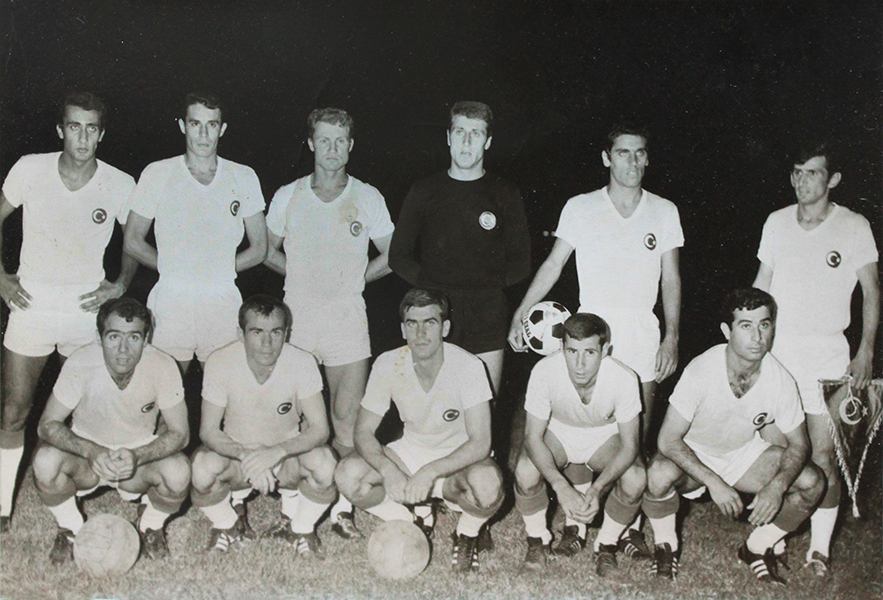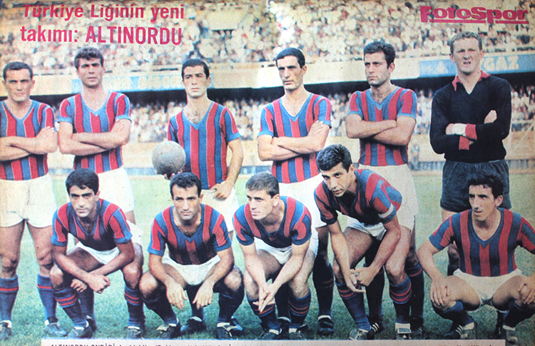 Ordu futbol takımı 1968’de, bir maçtan önce. Soldan sağa ayaktakiler: Yusuf Tunaoğlu (BJK), Necdet Tunca (Altay), Mehmet Aktan (Konyaspor), Nihat Akbay (GS), Selçuk Yalçıntaş (A.Gücü), Abdullah Çevrim (FB). Oturanlar: Ayfer Elmastaşoğlu (Altay), Numan Okumuş (FB), Zeki Temizler (Vefa), Temel Keskindemir (Samsunspor), Erkan Velioğlu (A.Ordu).