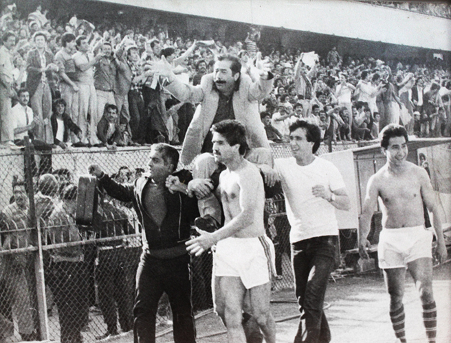 1980-81 sezonunun son haftasında Göztepe’nin şampiyon olmasının ardından, İsmail Sütçü ve arkadaşları Erkan Velioğlu’nu omuzlarda taşıyarak tur atıyor.