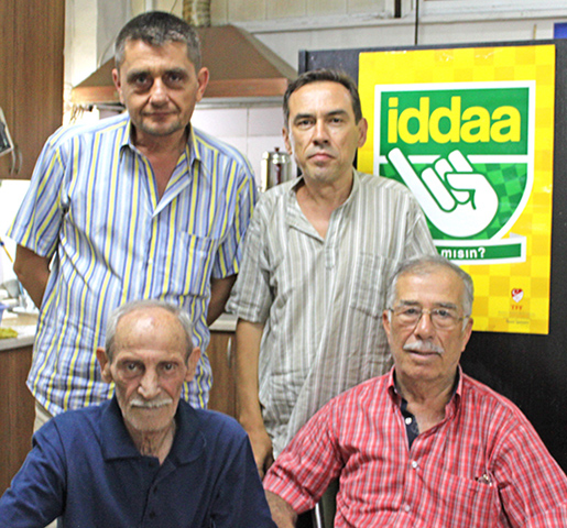 Ağustos 2012. Yaptığımız sohbet sonrası çekilen hatıra fotoğrafı. Üstte Orhan Berent (solda) ve Fethi Aytuna. Altta 60’lı yıllarda Altınordu’da oynayan Yılmaz Dinçer ve Erkan Velioğlu.