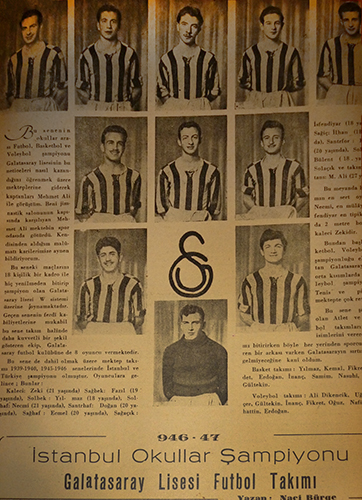 Para verecek durumu kalmamış kulübün, hiçbir geliri yok. Muslih hoca, meşhur eski futbolcu, mektepte hocalık yapıyor ama asıl işi Galatasaray kulübünü kurtarmak. Grand Cour denilen sahada sınıflar arası şampiyonluk maçları yapılırdı. Bizim sınıf çok erken bir şekilde orada şampiyonluğa gitti. Acayip bir şey oldu. Bizden daha büyük bir sınıfı yendik. Muslih hocanın işi çocuklar arasından iyi koşanı bulmak. Bizim sınıf ön plana çıktı. Benim beş arkadaşım Galatasaray birinci takımında oynadı. Muhtar, Doğan, Torik Necmi, Fazıl, İsfendiyar – bir sınıf ufaktı – onlar oynardı. Doğan 43-44’te liseye geçmişken birinci takıma geçti. Ben B takımında oynadım. Bire çıkamadım.