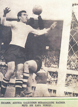 “Bizden önce de Fenerbahçe-Vefa maçı vardı. Onların maçı bitti, tünelden biz sahaya çıkıyoruz. Melih Ilgaz o zaman Vefa’da oynuyordu. Tam ben çıkarken o içeri giriyordu. Bildiğiniz gibi o da Darüşşafakalıydı. Beni görünce sarılıp öptü ve iyi şanslar diledi. Son derece heyecanlıydım. O günlerde Mohini diye bir fil vardı, İstanbul’a getirmişlerdi. O sırada statta dolaştırıyorlarmış. Sonradan bana, ‘Mohini’yi gördün mü?’ diye sordular. Heyecandan onu bile görememişim. Koşa koşa sahaya çıktık. O zamanki Austria takımı pek mağlubiyet yüzü gören bir takım değildi. Oswirk diye meşhur bir oyuncuları vardı. Maç başladı, oradan oraya koşuşuyorum. Kafa toplarında bir hakimiyetim vardı. Oswirk denen adamdan kafa toplarını almaya çalışıyorum. Tam da benim yanımda, müdafaada oynuyordu. Çok iyi futbolcuydu, o senelerde Avrupa karmasına seçilmişti.”