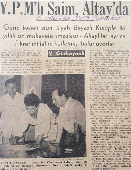 Böylece Sayım Soybayraktar, 1959-60 sezonunda Göztepe’ye dönmüş. “Genç karmada Ali Barçın idarecimizdi. Altay’da da yöneticiydi. Basmane’de küçük bir dükkânı vardı. Aynı zamanda hakemdi. Rahmetli bana kızdı. ‘Sen niye bizim ön mukaveleyi bozup Göztepe’ye gittin?’ diye sitem etti. O sene Göztepe’de Sedat abi, Güler abi, Gürsel abi, Kirlo Yılmaz, Sarı Önder, Bahri, Nevzat vardı. Ertesi sezon Fenerbahçe’den Seracettin abi, Karşıyaka’dan Sümer Çulha geldi. O zaman kaleci olarak Karşıyaka’dan gelen Erdoğan (Şentürk) abi, İzmirspor’dan Burhan (Şeflek) abi vardı. İkisi de yaşça benden büyüktü. Ben üçüncü kaleciydim ama İstanbul, Ankara deplasmanlarına hep giderdik. Beni götürürlerdi. Yedek kaleci olarak giderdim. O zaman yedek kaleci falan soyunmuyordu. Oyuncu değiştirme yoktu. Çıktın mı sahaya 11 kişi devam ediyorsun. Kaleci sakatlansa bile takımdan biri geçer. Ama yine de hastalık falan olursa diye kadroya alınırdık. Aslında tam oynamaya başlayacaktım, o sırada mahalleden birisine bir yumruk atınca mahkemelik olduk. O yüzden oynayamadım.”