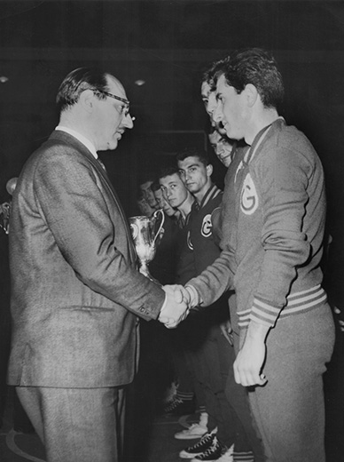“Ertesi sene İstanbul’a döndüm ve tıp fakültesine kaydoldum. O zamanlar fakülteler arasında basketbol maçları oluyordu. Yalçın Granit ile Osman Solakoğlu yeni oyuncular bulmak için bu üniversite maçlarını seyrediyorlarmış. Tabii benim bundan haberim yok. Beni beğenmişler, bir müddet sonra Galatasaray genç takımına aldılar. Hatta Osman Solakoğlu benim Ankara’da atletizm de yaptığımı öğrenmiş. Beni ısrarla üç adım atlama yarışına soktu. Bizde o senelerde atletizm maalesef çok zayıftı. Gençlerde üç adım yarışına iki kişi katıldık. Ben 13.05’le birinci oldum, rakibim ikinci oldu; üçüncü yarışmacı yoktu!”