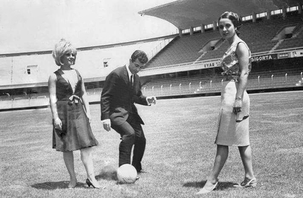Gönül Yazar, Metin Oktay ve Ayten Kaçmaz (Gökçer), Ali Sami Yen Stadı’nda yapılan basın tanıtımında.