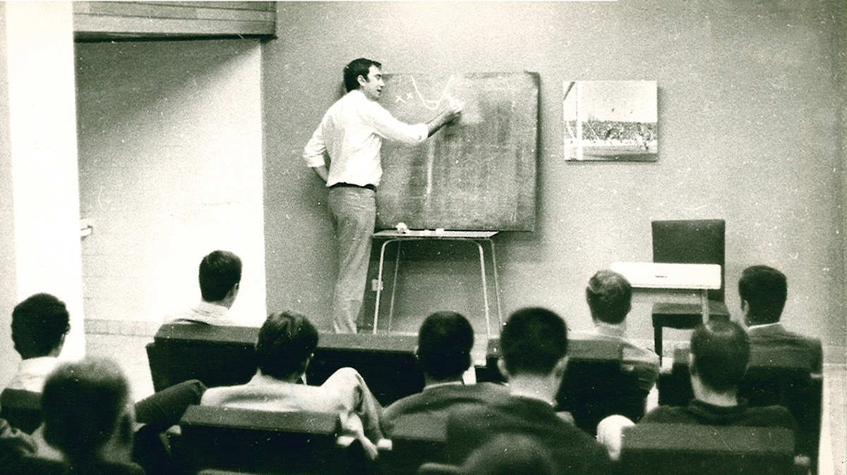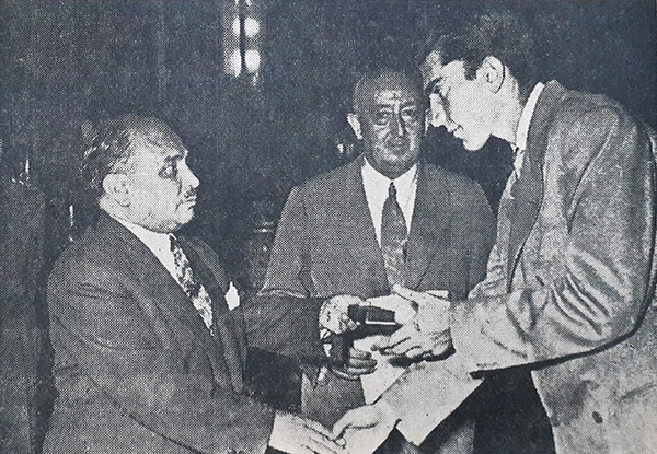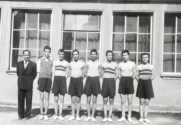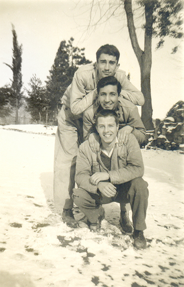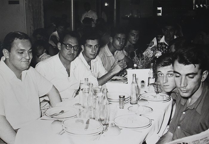 Yalçın Granit, Darüşşafaka Lisesi bahçesinde, sınıf arkadaşları Atilla Erten ve Senih Çalıkkocaoğlu ile.