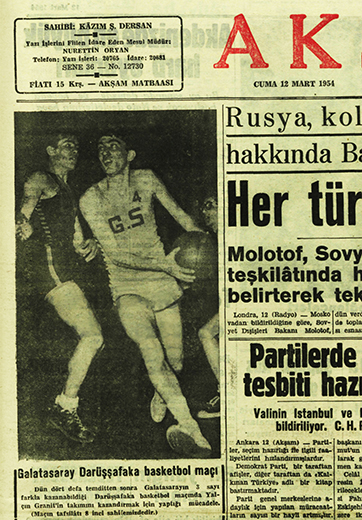 Dört temditli Darüşşafaka-Galatasaray maçı, o güne dek basketbola spor sayfalarında bile fazla yer vermeyen gazetelerin de birinci sayfalarında haber olmuştu. Akşam gazetesinin birinci sayfasında bu maç için kullanılan fotoğrafta Niyazi Turan ve Yalçın Granit karşı karşıya görülüyor.