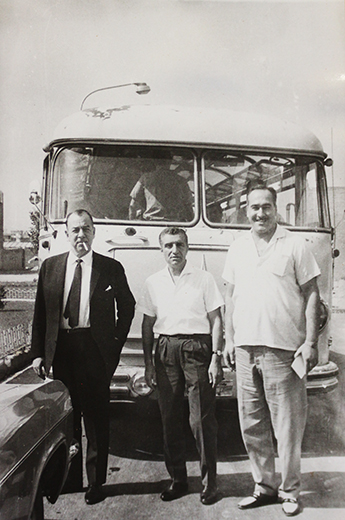 Milli Takımın 1967’deki İran seyahatinde, Federasyon Başkanı Feridun Koray (solda) ve İran Federasyon Başkanı ve otuzlu yıllarda Galatasaray’da oynayan Feridun Şerifzade ile.