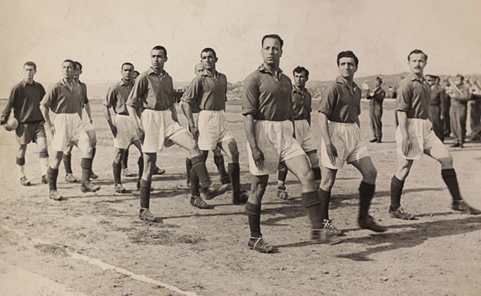 1948-49 Ankara Ligi şampiyonu Harp Okulu takımı. Üst sırada soldan ikinci Cemal Tezişler, üçüncü Mehmet Ali Yalım. Alt sırada ortada Vedat Türkoğlu. (Cem Atabeyoğlu arşivi)