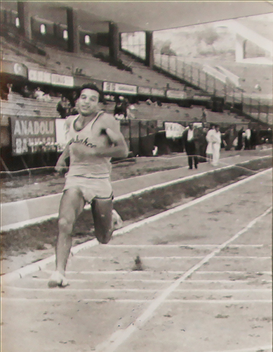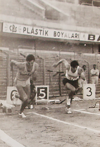 “Böylece atletizm takımına girdim ama ne yapacağımı bilmiyorum. Uzun mu atlayacağım, gülle mi atacağım, koşacağım mı belli değil. Kimsenin bir şey bildiği yok. Ben o güne dek atletizm müsabakası seyretmiş değilim, kuralları da bilmiyorum. Hep basketbol oynamışım o güne dek. Ankara’da Türkiye Şampiyonası’na gittik. İlk gün sen bir seyret dediler. Ben de oturdum tribüne, atletizm yarışı nedir o gün gördüm ilk defa. Deparda biri önden çıkıyor, birisi arkadan çıkıyor, baştan tuhaf geldi. Sonra anladım ki, daire genişleyince önden çıkıyor adam. Basketbolda iyi zıplardım, Samim Göreç bunu yöneticilere söylemiş. Bana, ‘Sen uzun atla’ dediler. O zaman Ahsen diye bir sporcu vardı uzun atlamacı. ‘Belim sakat, ben atlayamayacağım’ demiş. Ben ertesi günkü uzun atlama yarışını bekliyorum. Fakat o zamanlar 9 lira mı, 10 lira mı ne harcırah veriliyordu. Ahsen onu alamayacağım diye korkmuş, yarışa çıktı! Milli takımın da birinci adamı o zaman. O atlayacağım deyince ben kenara geçtim bekliyorum. 400 metre yarışı başlamak üzereyken bizim sporcunun lifi kopmuş. Birisi gelip bana, ‘Sen 400 koş’ dedi. Bana ‘buradan başlayacaksın, burada döneceksin, burada bitecek’ diye tarif ettiler. Öyle başladık yani, uzun atlayacakken 400 metre yarışına girdim. Fakat o yarışı koşarken ilk 200 metrede Türkiye rekorunu kırmışım! O zaman rekor 22 saniyeymiş, ben 21,8 koşmuşum. Onun üzerine herkes ‘kim bu adam, nereden çıktı?’ diye sormuş. Federasyon Başkanı Naili Moran seyrediyormuş, ben tabii tanımıyorum o zaman. 1960 darbesinden sonra başbakanlık yapan Suat Hayri Ürgüplü, aynı zamanda eski atletmiş; o da tribündeymiş. Benim koşmam o gün olay oldu. Yarıştan sonra Federasyon Başkanı beni çağırdı. ‘400 metre sana uzun gelir, sen 200 koş’ dedi.”