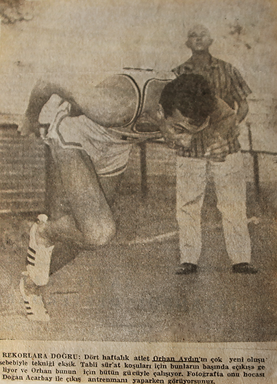Türk atletizminin o yıllardaki durumunu sorduğumuzda bir dokun bin ah işit dercesine konuşuyor Orhan Aydın: “Federasyon yetkililerine bir yarıştan sonra, ‘Birinciyi, ikinciyi bırakın, bu koşullarda atletizm yapan herkese madalya verin,’ dedim. Üç-beş sene atletizm yaptığım müddetçe gördüm ki, Türkiye’de atletizm içler acısıydı. Antrenör yok, saha yok, imkan yok, yapanlar hep gariban. İstanbul’da bir tek İnönü Stadı vardı. Dolmabahçe’de antrenman yapmak cesaret işiydi çünkü Cumartesi-Pazar içeri giremezsin, futbol maçları oynanıyor. Pazartesi-Cuma arası antrenman yapılabilirdi. Stadın kapıları hafta arası açık dururdu. Önüne gelen geçer girer, tabii oradan sağlam çıkmak mümkün değil. Soyunma odasına girip paranı çalarlardı. Onun için biz yedek kulübesinde soyunurduk, antrenman yaparken gözümüz hep orada olurdu. Yanımıza sadece yol parası alırdık. Duş diye bir şey yok. O şartlarda spor yapmaya çalışıyorduk. O zamanlar tartan pist yok, toprak var. Torbada mecburen çivi ve çekiç taşırsın, takoz çakacaksın çünkü. Düzensiz, tertipsiz, sıfır organizasyon bir alandı. Dikkat edersen hep teknik olmayan dallarda başarı kazanırdık. 5 bin, 10 bin, maraton, onlarda çok fazla bir şey istemezdi. Teknik branşlarda antrenörsüz olması mümkün değildi. Antrenörsüz 110 engelci, diskçi, çekiççi, yüksek atlamacı olmaz. Sprint branşları hiç olmaz. Milli takım antrenörleri hep maratoncuydu.”