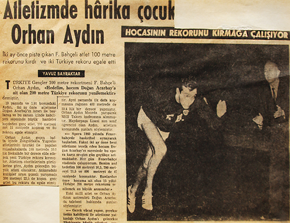 Spora basketbolla başlamış, ancak ülkemize özgü bazı gelişmeler sonucu birkaç yıl içinde kendini atletizm pistlerinde bulmuştu. Atletizme başlayalı henüz iki ay olmuşken, 15 yıldır kırılamayan Türkiye rekorunu büyük bir farkla kırması dikkatleri bir anda üzerine çevirdi. Aşağıda ilginç anılarını okuyacağınız Orhan Aydın, spora önem verilen bir ülkede yaşamış olsaydı belki olimpiyatlarda kürsüye çıkar, en azından finalde koşabilirdi. Oysa futbol dışındaki hemen her branşın adet yerini bulsun diye yapıldığı bir ülkede yaşıyordu. Rakiplerden daha çetin olan zor şartlarla mücadele etmeyi fazla sürdürememiş ve sporu en verimli olacağı yaşta bırakıp kendini tamamen mesleğine vermişti. Orhan Aydın’ın bu ilginç spor yaşamını Fenerbahçe yıldız basketbol takımından itibaren dinlemeye başlıyoruz: