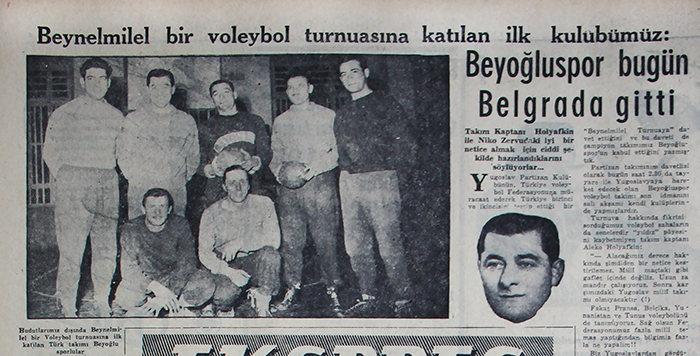 Kırklı yılların sonu, ellili yılların başında voleybolun en güçlü ekibi Beyoğluspor’da İstanbul ve Türkiye şampiyonluğu yaşayan Marsel Şalabi o günleri şöyle anlatıyor: “Beyoğluspor’un rakibi Galatasaray’dı. Bir de Vefa vardı voleybolda. Arap bir göz doktoru vardı, ismi Bedri veya Zeki’ydi. Simsiyahtı, çok güzel oynardı. Senesini bilmiyorum, Vefa bana 50 lira mı 100 lira mı ne teklif etti gitmem için. Ben işim evime yakın diye gitmedim. O zaman maçlar Eminönü Halkevi ve Şişli Halkevi’nde oynanırdı. Eminönü Halkevi’nde çok oynadım. Şişli Halkevi’ni bugün kimse bilmez. Teşvikiye Camisi’nden Osmanbey’e giderken dörtyol ağzını geçtikten sonra, 50 metre ileride sağdaydı. Arkasında bir bahçe vardı, oradaki toprak sahada oynadım ben. Vallahi yalansız 75-80 sene olmuş. Beyoğluspor’da antrenörlüğümüzü Büyük Holyafkin yapardı.” Söz Holyafkin isminden açılmışken belirtelim; 1917’deki Bolşevik Devrimi’nde İstanbul’a kaçan Beyaz Ruslar arasında yer alan Holyafkin ailesine mensup Aleksandr (Büyük) ve Valentin/Valek (Küçük) kardeşler oyuncu, antrenör ve hakem olarak voleybol tarihimizin en önemli isimleri arasında yer almaktadır.