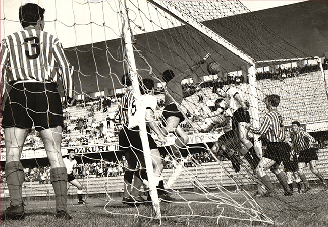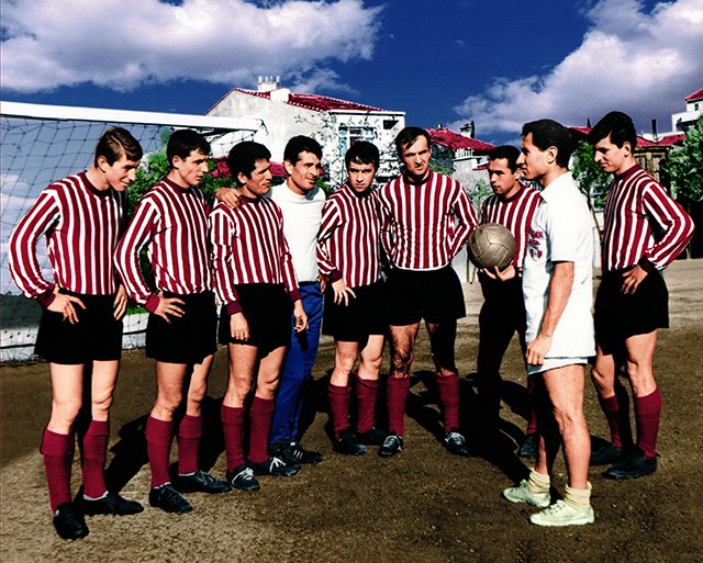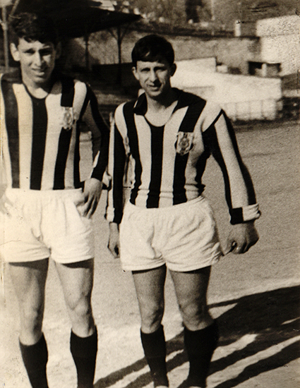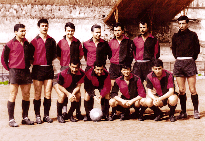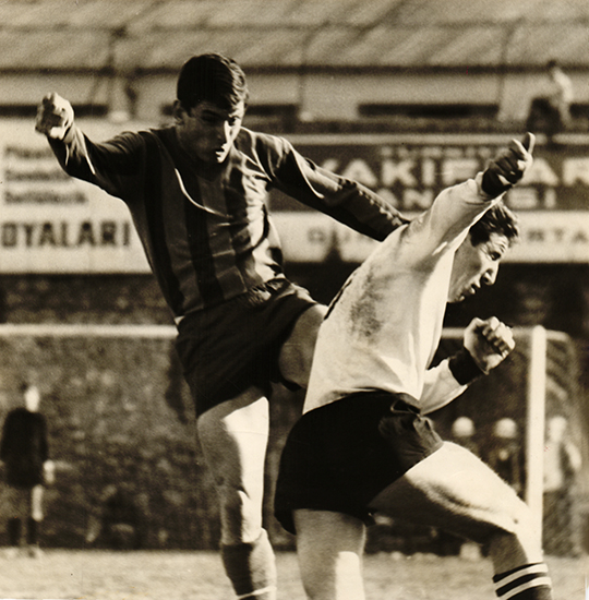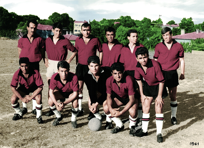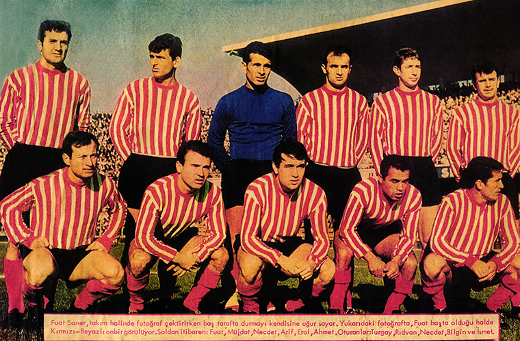 “Karagümrük genç takımı bir sene sürdü. İkinci sene gitmedim. Ne antrenman var ne bir şey. Ben de zaten lisede okuyorum. Hadi gel deseler belki gidemeyeceğim antrenmana. Sonra bir kez gittim. İşte şu resim (aşağıda) takım kaptanı olduğum maç. Bir maç oynadım sadece çünkü okuldan sonra çalışıyordum. Florya Deniz Kulübü vardı, başkanı da Yeni Sabah gazetesinin sahibi Safa Kılıçlıoğlu’ydu. Kış ayları, alıyordum elime makbuzu, oradaki üyelere gidip aidat topluyordum. Deniz kenarında çok güzel bir yerdi, Güneş plajının hemen yanında. Yazın denize giren üyelerden oranın yaşaması için giriş parası alıyorduk. Kışın da iyi havalarda gelip oyun oynuyorlardı. Ben mecburen gidiyorum oraya. Kış sezonunda aşçı filan yok; bekçinin hanımı bir şeyler hazırlıyor, ben de patatesleri filan soyuyorum. Böyle bir çalışma içindeyim ve 16 yaşındayım. O yüzden ikinci sene genç takıma gitmedim hiç. Şenlikköy’deki takımıma bile yetişemiyordum. Bir sene oynamadım gibi bir şey. Dediler ki, ‘Böyle olmaz, sen A takımda oynayacak adamsın’. İyi de ben çalışıyorum, eve katkıda bulunuyorum. 300 lira maaş alıyordum. ‘Tamam biz vereceğiz,’ dediler. O şekilde iki sene Karagümrük A takımında oynadım.”